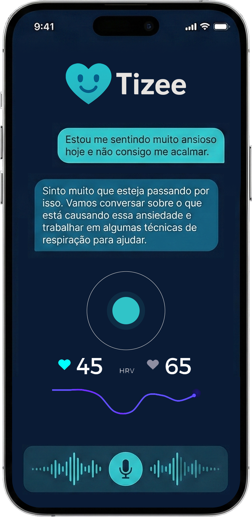O Tizee utiliza técnicas baseadas na Terapia Cognitivo-Comportamental (TCC) e exercícios de respiração guiada. Ele ajuda a "desacelerar" seu cérebro, validando o que você sente e oferecendo passos práticos para mudar o foco da ansiedade para a calma.